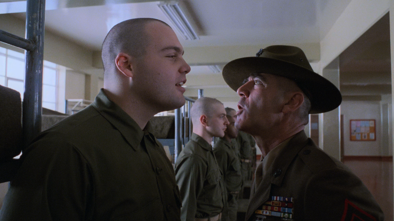 ช่วงแรกของหนังที่เกิดขึ้นในค่ายฝึกถือเป็นหนึ่งในฉากที่ทรงพลังที่สุด โดยเฉพาะการแสดงของ R. Lee Ermey ในบทครูฝึก Hartman